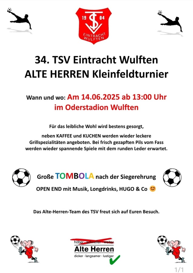 Es ist wieder Zeit für das jährliche Kleinfeldturnier unserer alten Herren. Meldet euch gerne an!