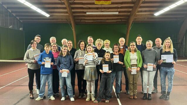 Die Verleihung des Deutschen Sportabzeichens 2024 fand am 31. Januar 2025 wieder traditionell in gemütlicher Atmosphäre statt. Im Kaminzimmer des TC Wulften versammelten sich 25 erfolgreiche Teilnehmer, um ihre verdienten Urkunden und Abzeichen entgegenzunehmen. Insgesamt wurden 29 Urkunden vergeben, darunter 4 Familienurkunden. Die Leistungen der Teilnehmer waren beeindruckend: 26 Mal Gold, 2 Mal Silber und 1 Mal Bronze wurden erreicht. Nach den sportlichen Herausforderungen im letzten Jahr war dies der gelungene Abschluss, bei dem nicht nur die Leistungen in den Bereichen Ausdauer, Kraft, Schnelligkeit und Koordination gewürdigt wurden, sondern auch das gesellige Miteinander im Vordergrund stand.